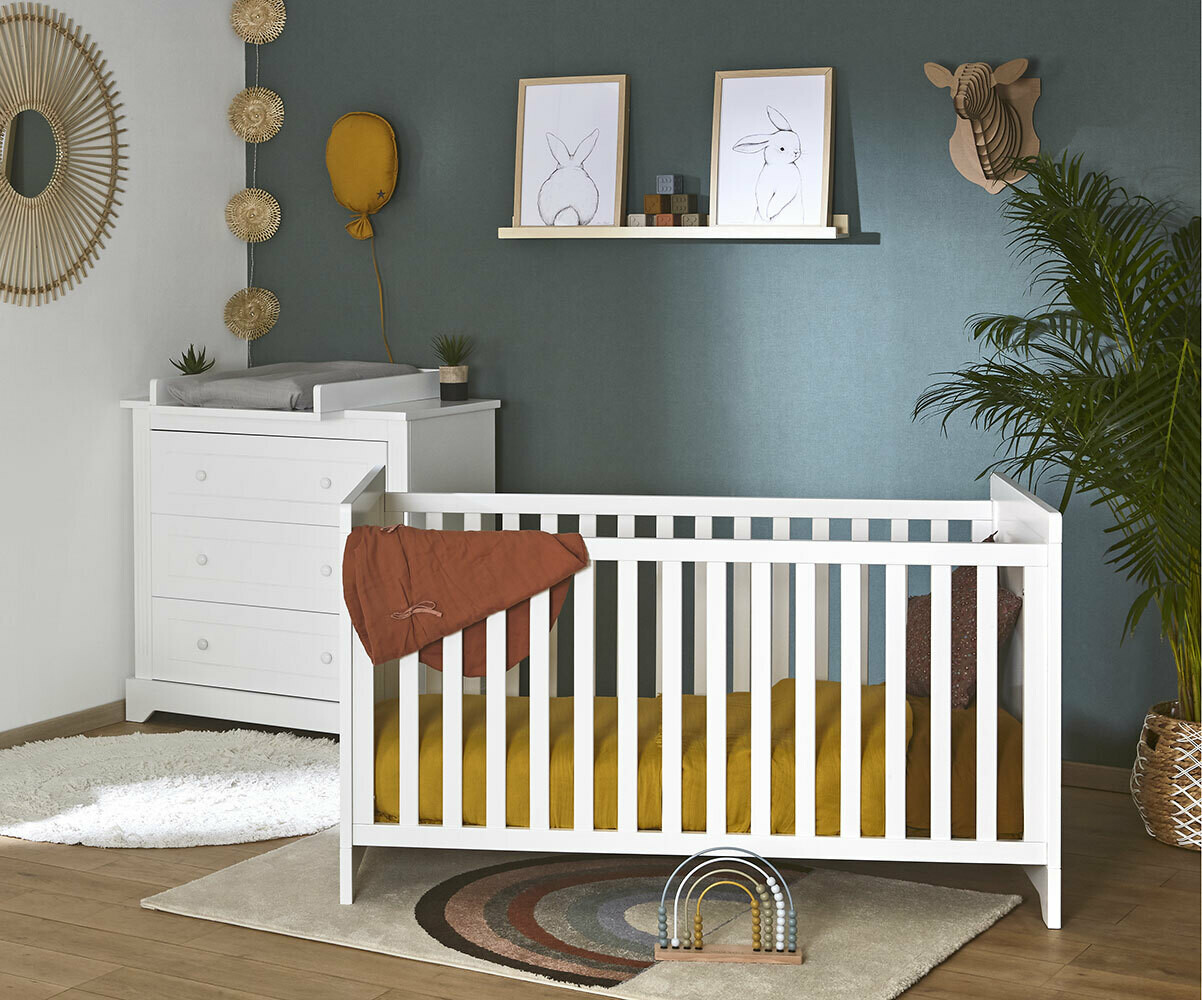 La cuna Roma es un mobiliario práctico, gracias a su diseño con un somier convertible, el cual podrás modificar según tus necesidades y las del bebé: