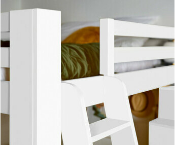 Por último, para ganar espacio de almacenamiento y personalizar aún más la magnífica cama alta de tu hijo, nuestros muebles de almacenamiento Rimi están disponibles como opción: armario con compartimentos, así como la estantería suspendida, el cubo y la mesita de noche Gana.