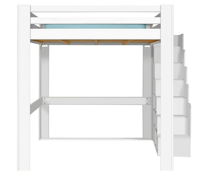 Con dos alturas de somier posibles (175 cm de altura bajo el somier o 151 cm en versión baja), los aventureros podrán deslizarse fácilmente bajo el somier, independientemente de la configuración de la habitación. Además, la escalera se puede colocar en los cuatro lados, lo que ofrece una máxima flexibilidad en la disposición del dormitorio.