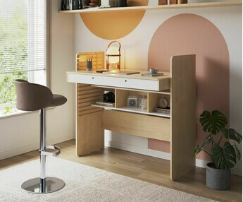 El escritorio Marigo es un mueble que se adapta tanto a una habitación infantil como a una de adulto. Combinado con la silla de escritorio Nylo, el conjunto aportará un toque moderno. Además de sus líneas limpias y su aspecto atemporal, este mobiliario destaca por su practicidad. Ofrece varios espacios de almacenamiento que puedes configurar según tus necesidades. Con un gran cajón de 10 cm de altura y su estante con 3 compartimientos, tu hijo tendrá todo a mano y podrá organizar fácilmente sus libros y cuadernos.