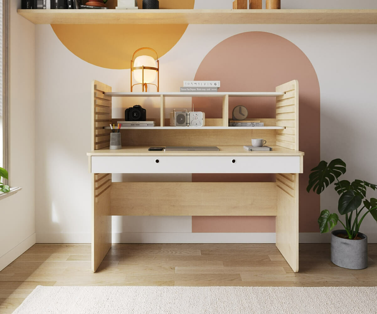 Escritorio con superficie y espacio de almacenamiento ajustables