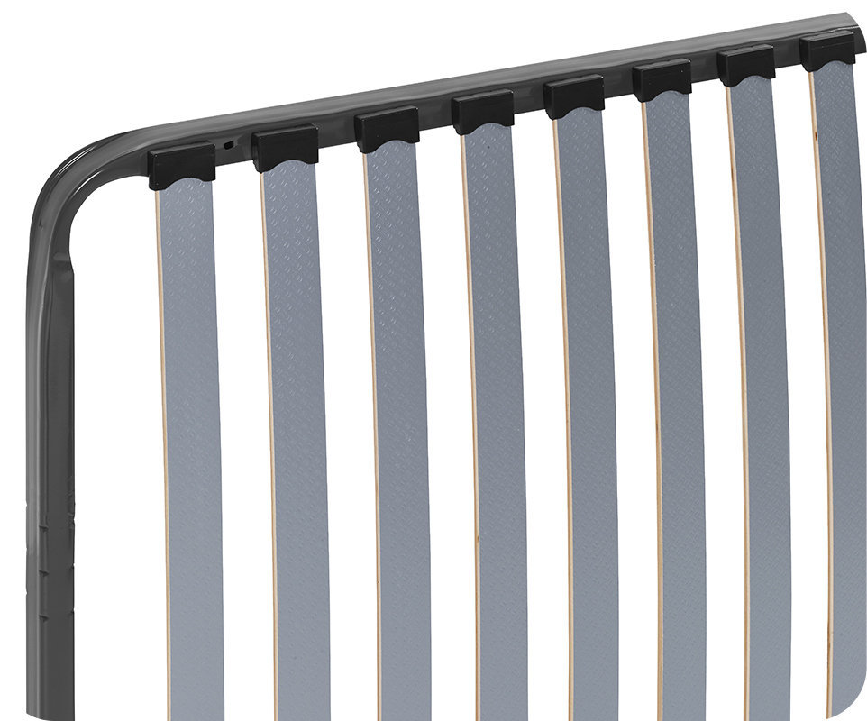 El somier de una plaza dispone de un marco de metal con esquinas redondeadas. Su estructura le permite ser instalado fácilmente en cualquier tipo de cama.