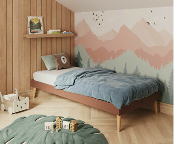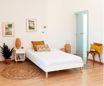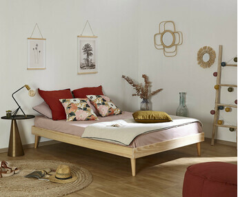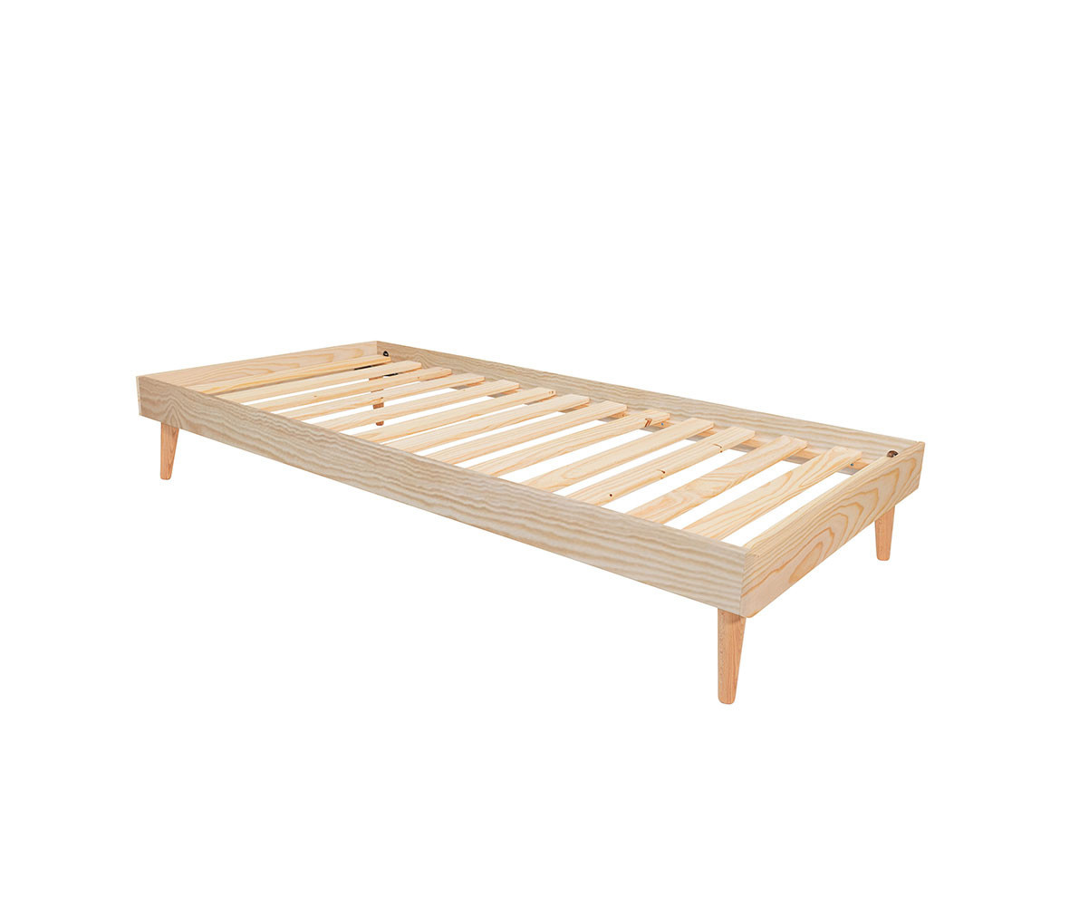 - Un somier de láminas de pino macizo para fijar sobre los largueros. Garantiza el apoyo y la ventilación del colchón.