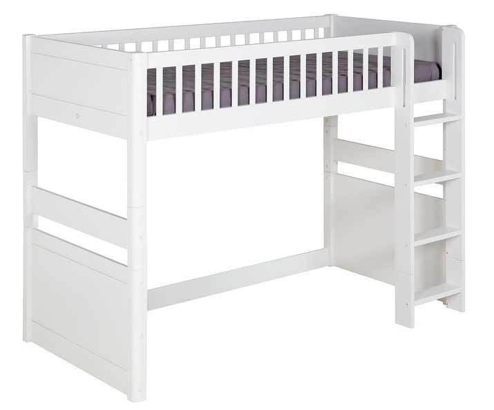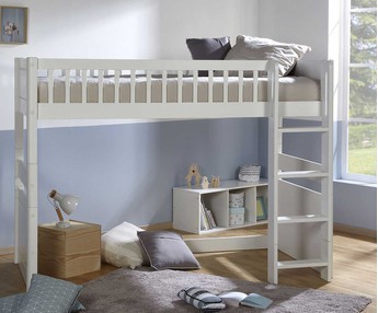Cama media alta, blanca y de madera maciza para niñas y niños