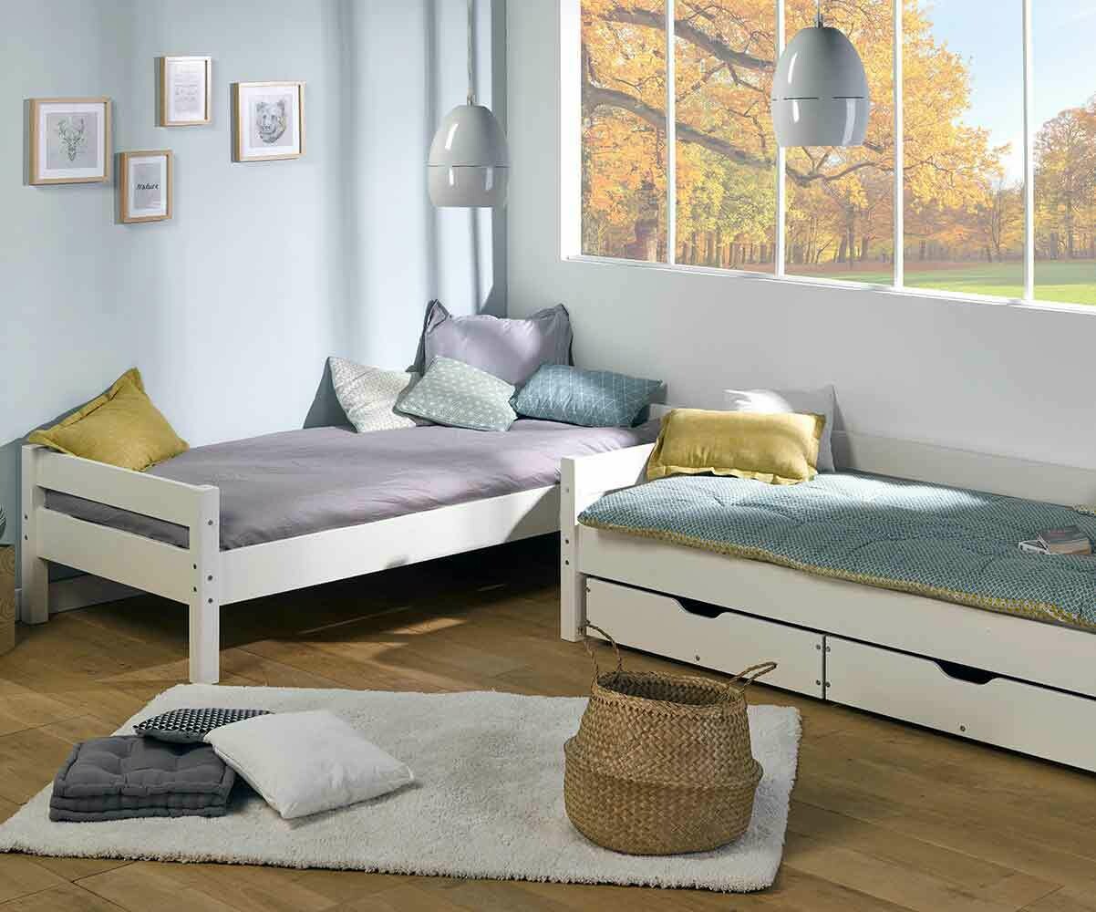 La litera separable Wood de madera maciza y decorada con pintura al agua, puede instalarse en un dormitorio en el que duerma un niño e incluso dos y se adapta bien tanto para niños como para niñas. Este robusto mueble te permitirá tener dos camas en el espacio de una, lo que deja sitio más que suficiente para crear una zona de juegos o colocar un pequeño escritorio.