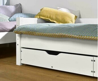 Este juego de litera está compuesto de un mueble resistente y robusto de madera maciza con dos somieres y dos colchones. Cada una de las camas es capaz de soportar hasta 90 kilos de peso, por lo que alguna noche te podrás acostar con tu pequeño ángel sin problemas. El uso de la cama de arriba es recomendable para niños de más de 6 años para evitar caídas nocturnas.