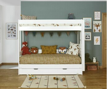 Perfecta para un espacio reducido, la litera debe sus numerosas cualidades al talento de nuestros diseñadores de mobiliario infantil y a nuestros fabricantes asociados que trabajan para ofrecerte la mejor calidad.