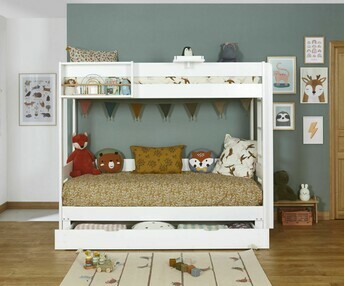¿Los niños crecen y el más pequeño te pide una cama grande? ¿A tus hijos les gustaría invitar a un amigo a quedarse a dormir? O ¿sueñas con poder recibir a todos tus nietos al mismo tiempo? La litera infantil con cama nido y con colchón Hikari es la solución ideal a todos tus problemas, ¡incluso en una habitación pequeña!